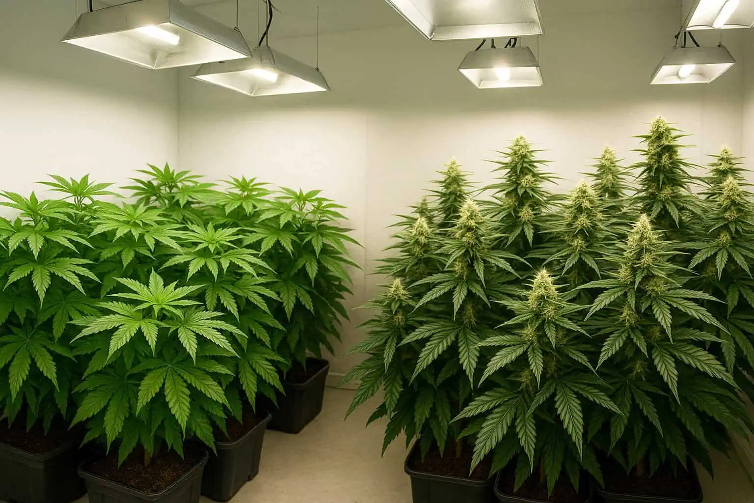 The transition point is crucial because it determines not only yield potential but also how well your space and resources will handle the plant’s natural stretching and budding.